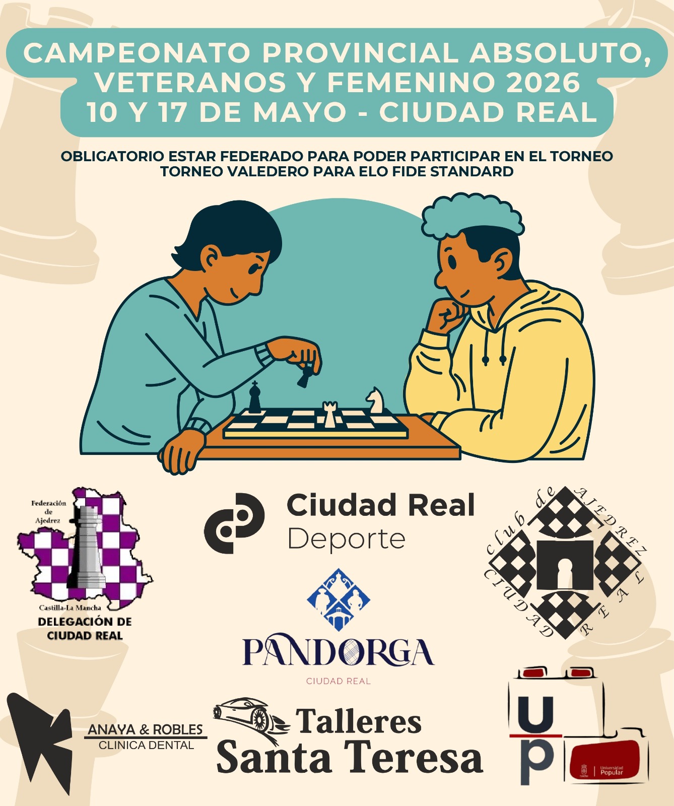 Los campeones y campeonas provinciales de cada categoría representarán a la provincia de Ciudad Real en el Cto. Regional por Edades que se disputará del 11 al 14 de Abril, posiblemente en el Hotel Palacio de Albacete.