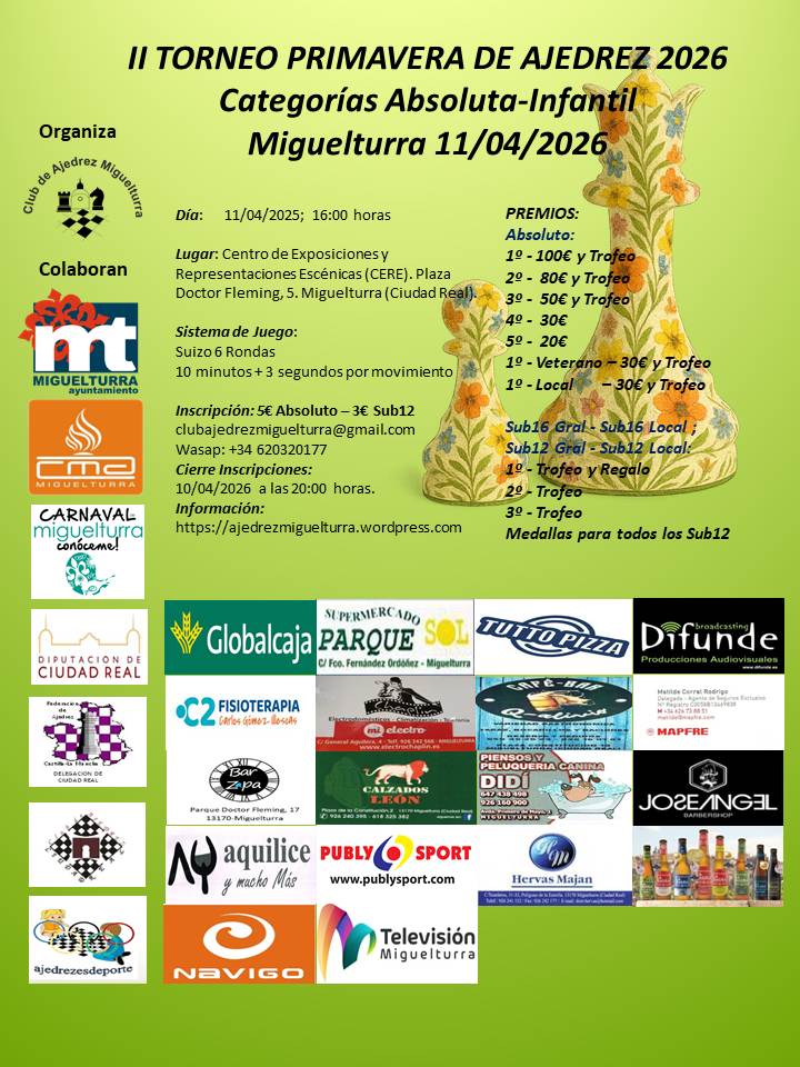 II TORNEO DE PRIMAVERA DE AJEDREZ DEL CLUB DE AJEDREZ MIGUELTURRA 2026