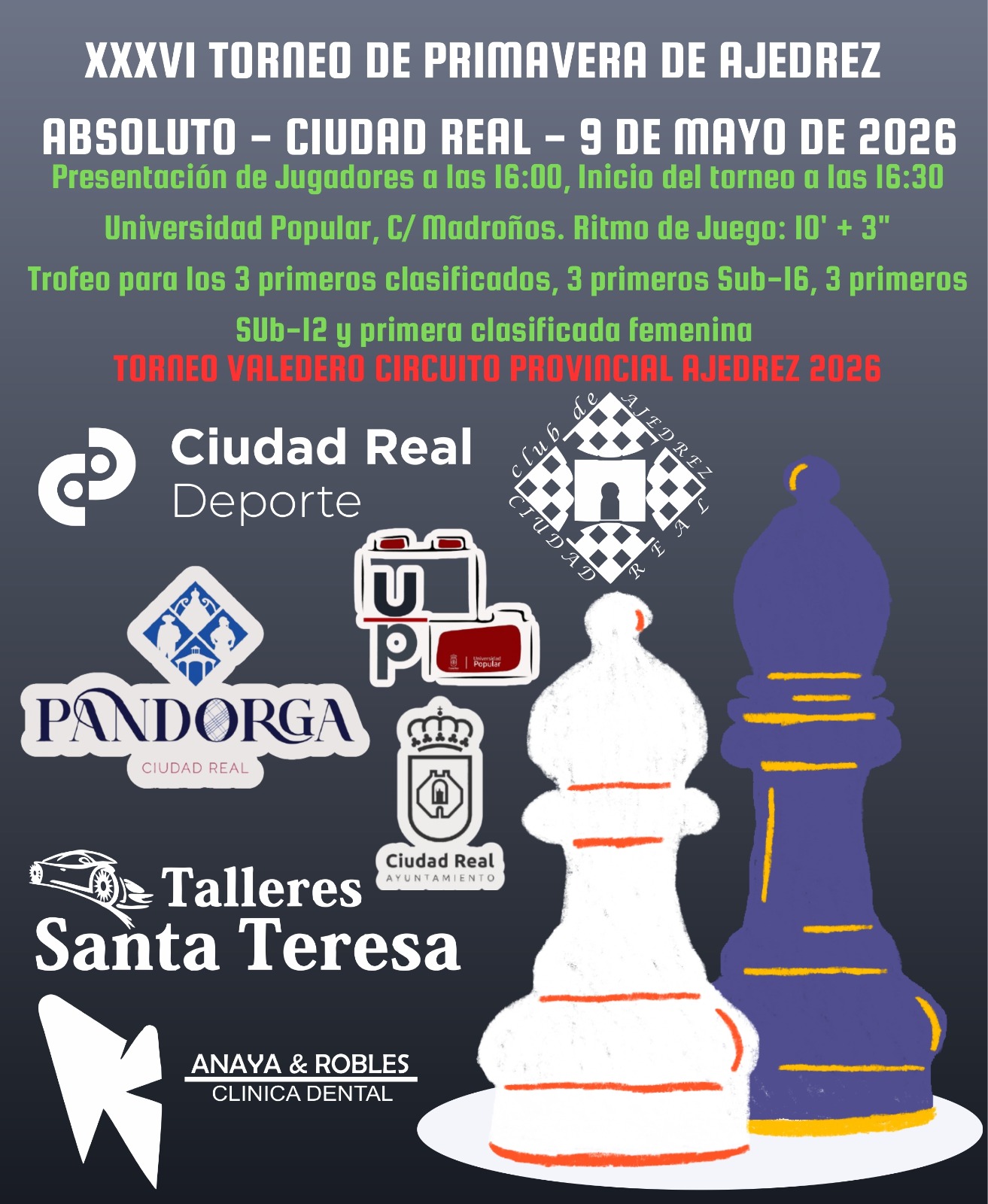XXXVI TORNEO DE PRIMAVERA DE AJEDREZ 2026 – ABSOLUTO CIUDAD REAL